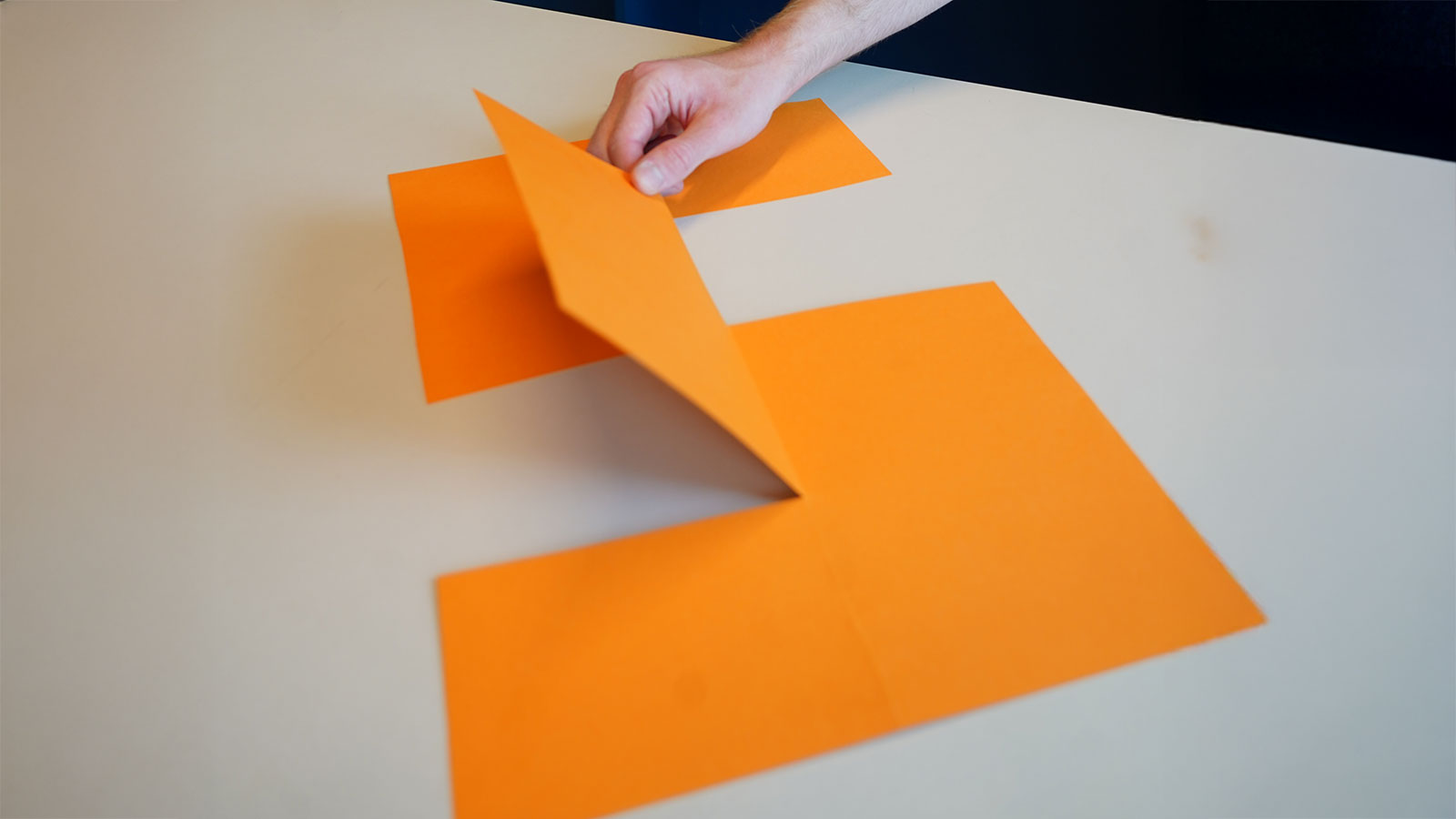 Her er et sjovt lille eksperiment, I nemt selv kan prøve derhjemme: Fold et stykke papir, så det flapper henover sig selv.