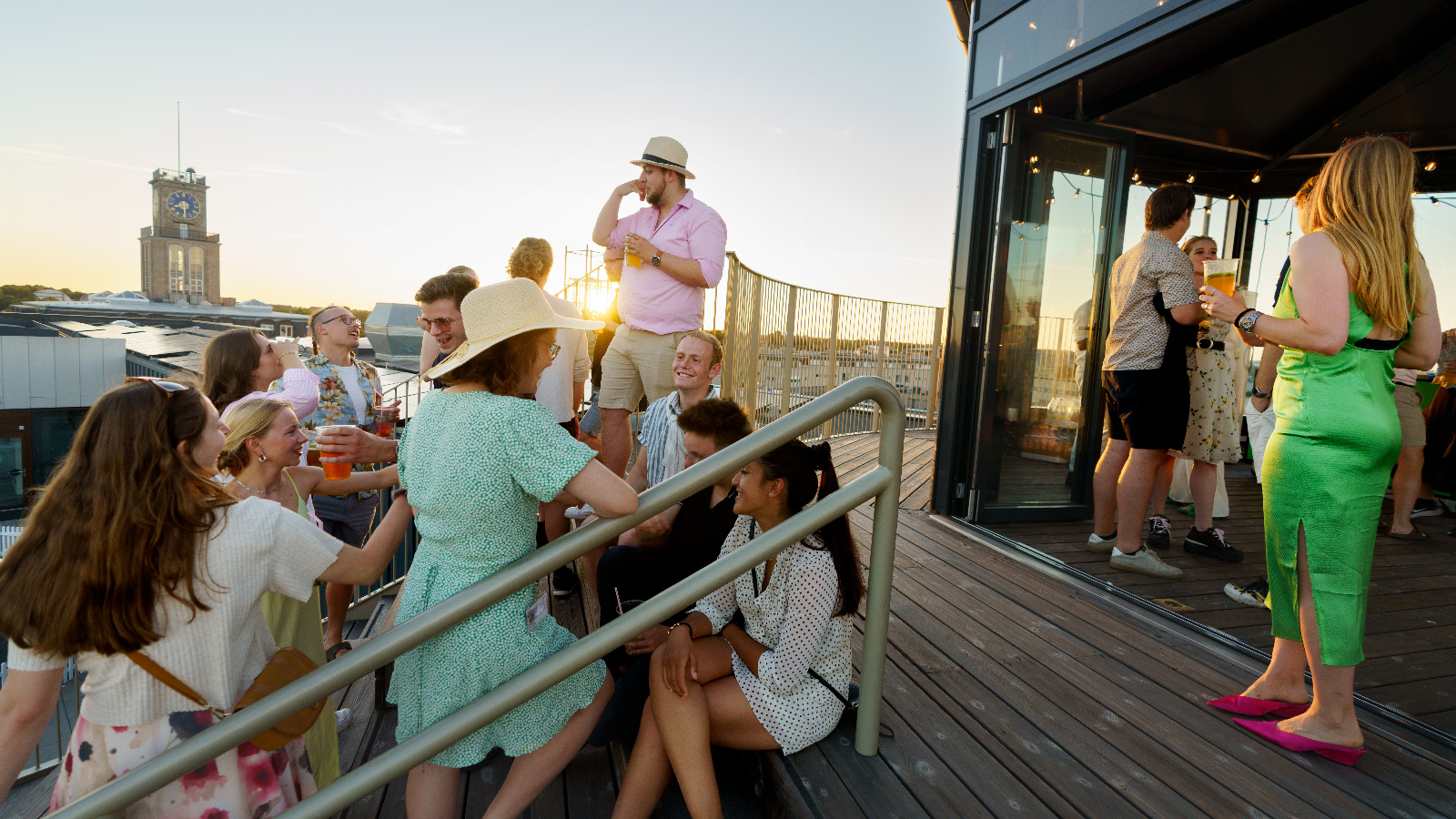 Få et tilbudHvis I følger Himmeltrappen op til det allerøverste niveau af Tagterrassen, finder I vores pavillon. Herfra får I den mest betagende udsigt over byen, Tuborg havn, Øresund og Sverige.