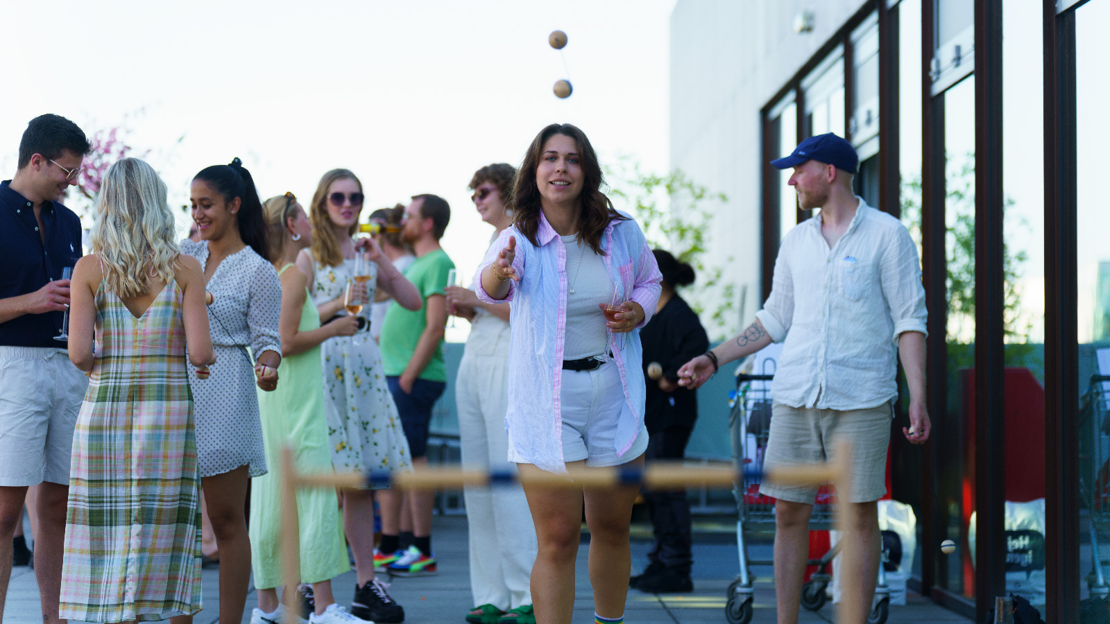 Tagterrassen er udstyret med picnicborde i træ og liggestole i alle størrelser. Fra de helt små til nogle så store, at selv en kontinentalplade kunne rykke sig uden at skabe jordskælv.